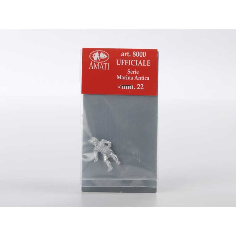 Figura en miniatura de 22 mm para modelismo naval de un oficial en metal con acabado natural para ser decorado al gusto.