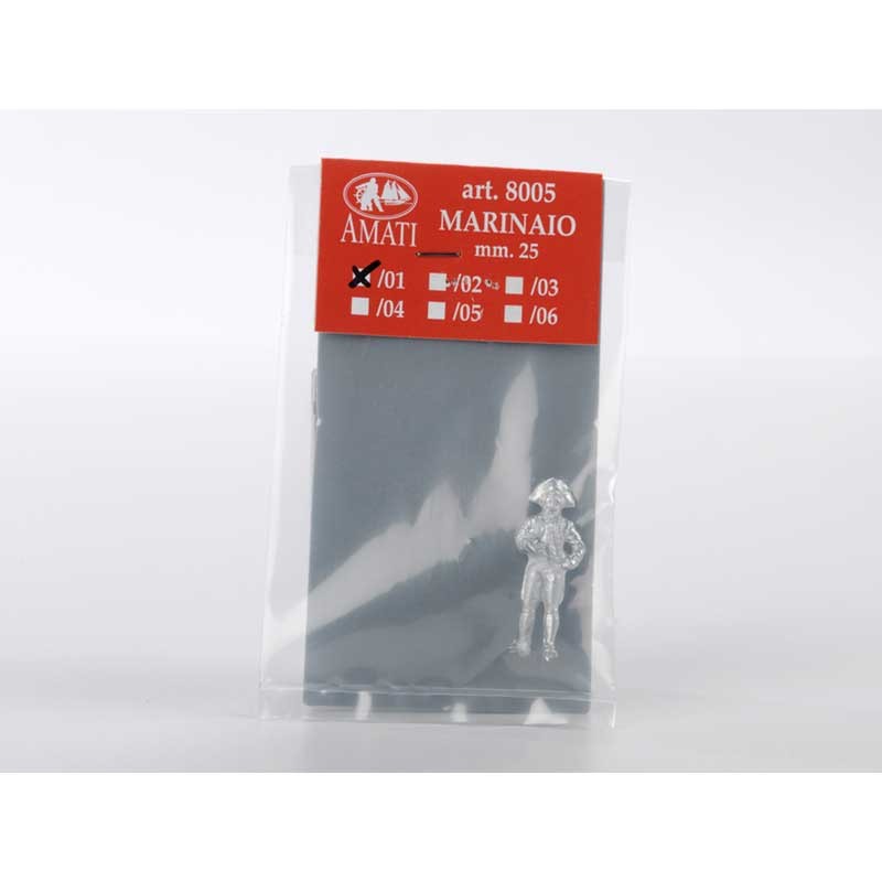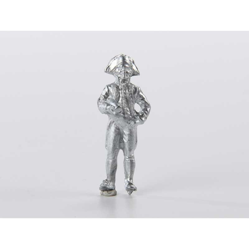 Figura en miniatura de 25 mm para modelismo naval de un oficial en metal con acabado natural para ser decorado al gusto.