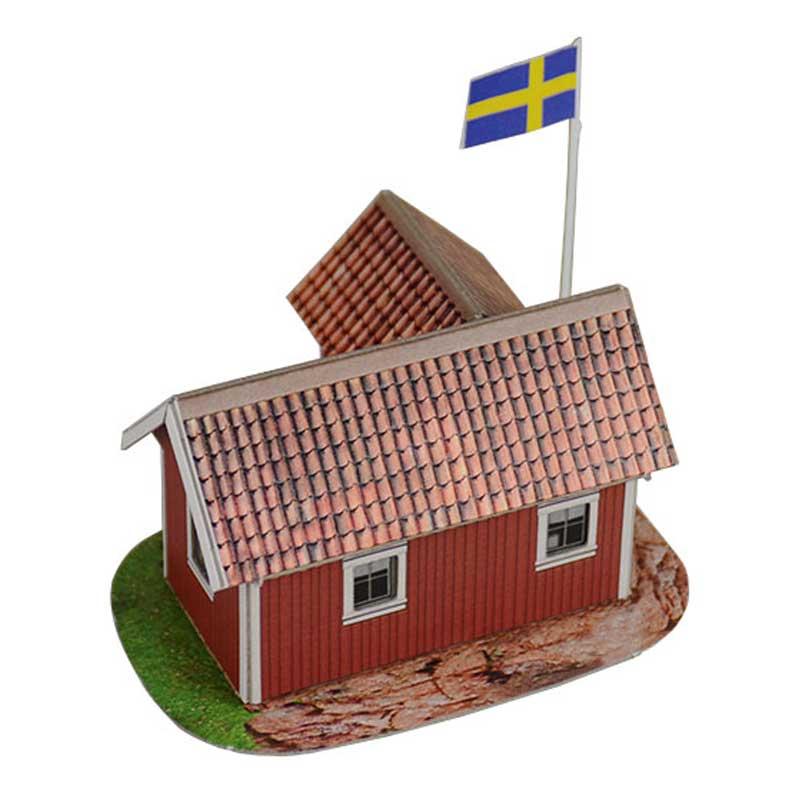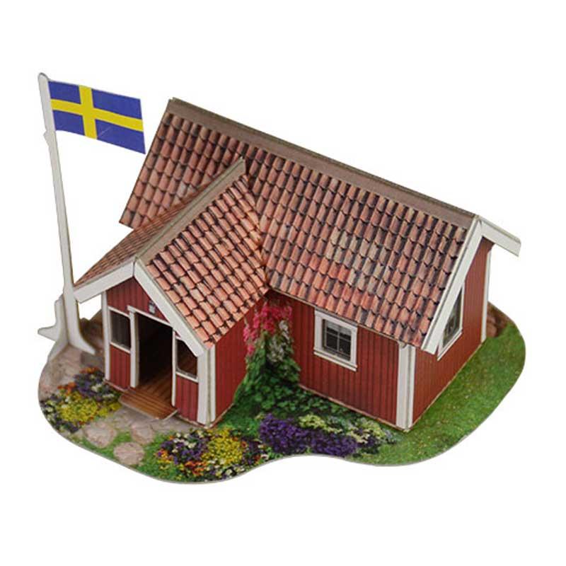 Puzzle 3D casa sueca a escala 1/87 hecho de cartón doble e impreso de alta calidad y resistencia.