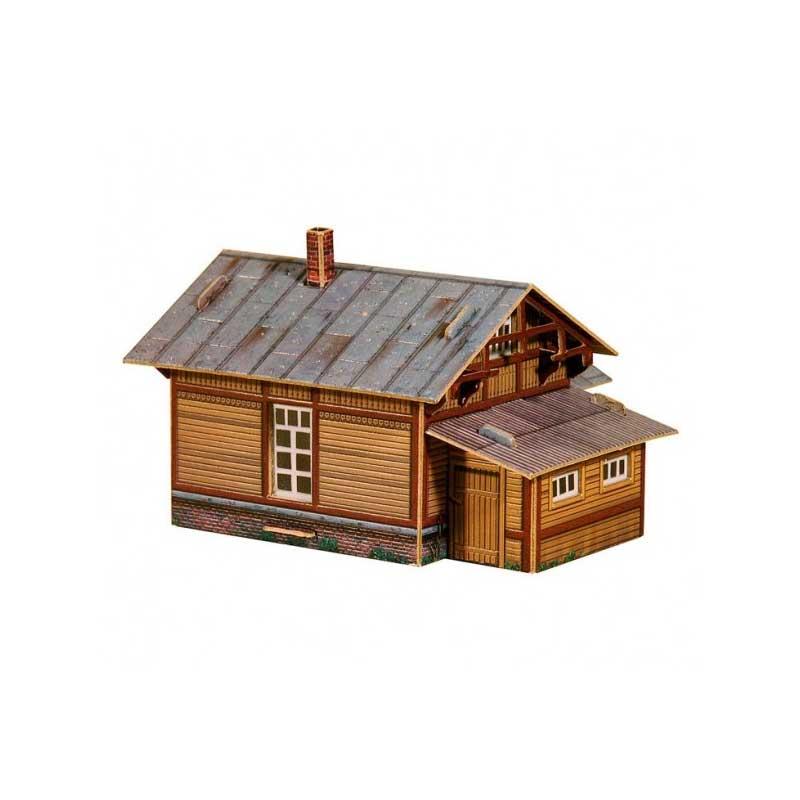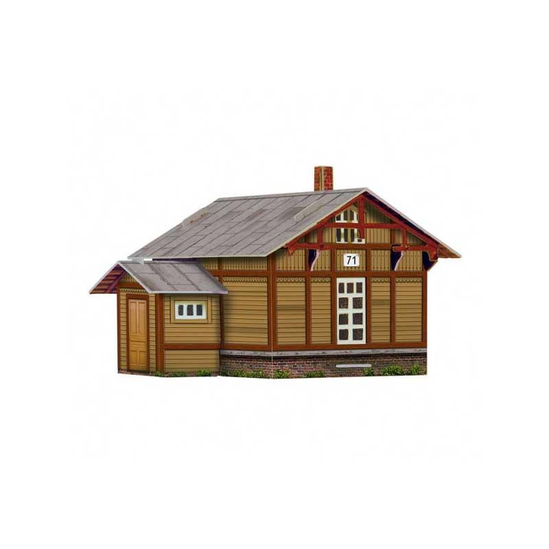 Puzzle 3D casa vigilancia ferroviaria color madera a escala 1/87 hecho de cartón doble e impreso de alta calidad y resistencia.