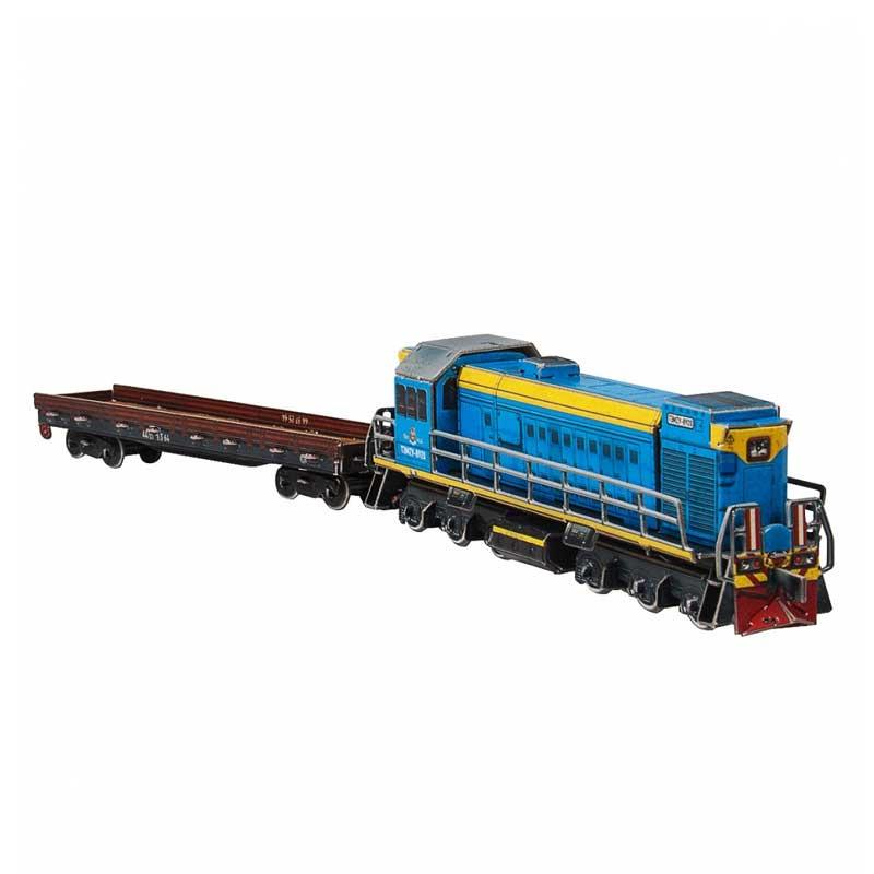 Puzzle 3D locomotora diesel TEM-2U a escala 1/87 hecho de cartón doble e impreso de alta calidad y resistencia.