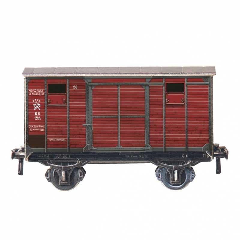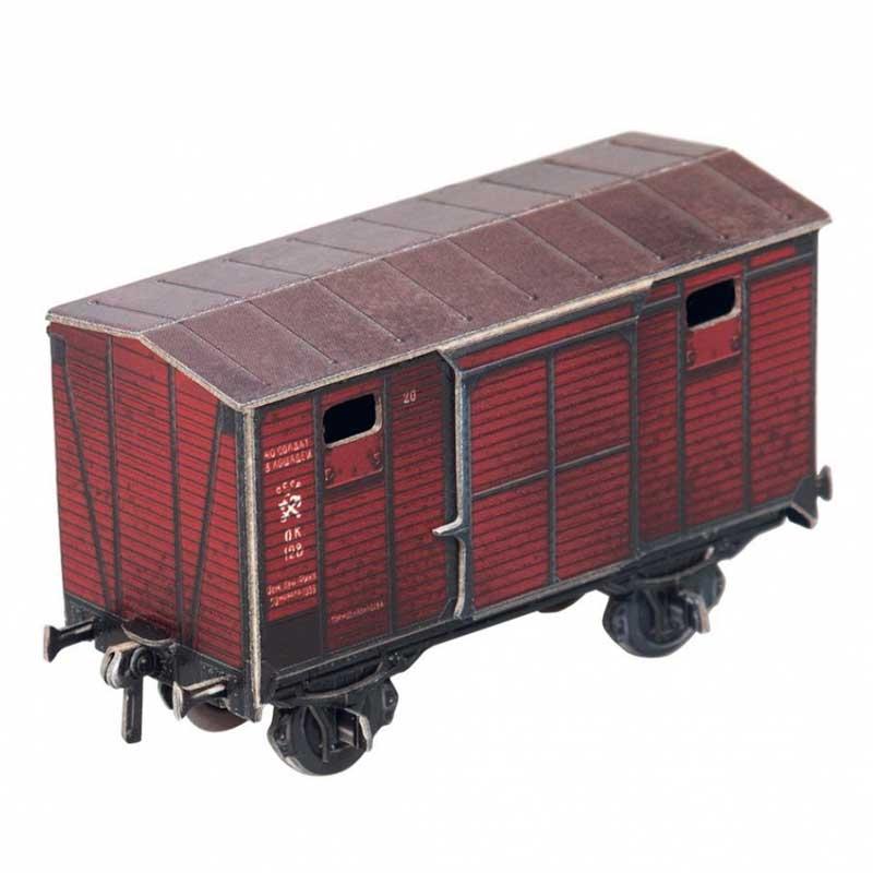 Puzzle 3D vagón cerrado 2 ejes a escala 1/87 hecho de cartón doble e impreso de alta calidad y resistencia.