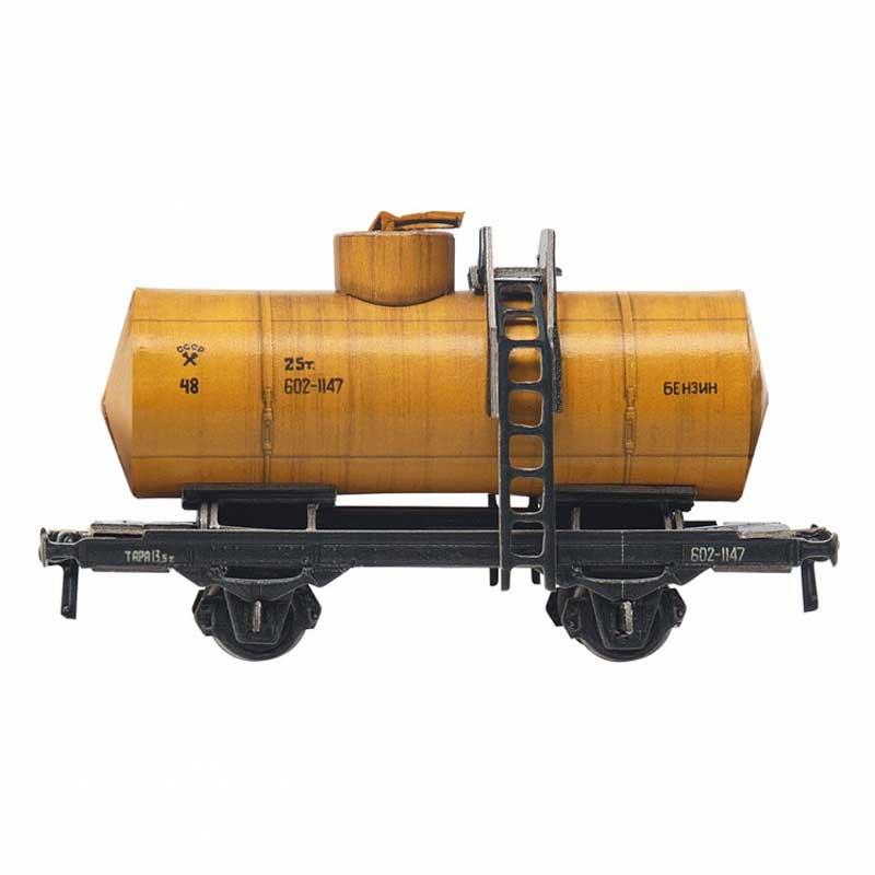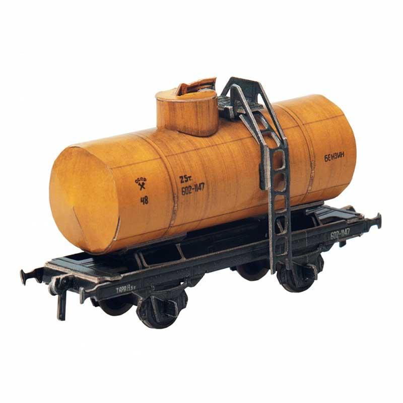 Puzzle 3D vagón cisterna biaxial para gasolina a escala 1/87 hecho de cartón doble e impreso de alta calidad y resistencia.