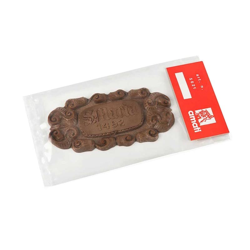 Placa decorativa de plástico imitación madera de 100x50 mm para peana con inscripción personalizada para la nao Santa María.
