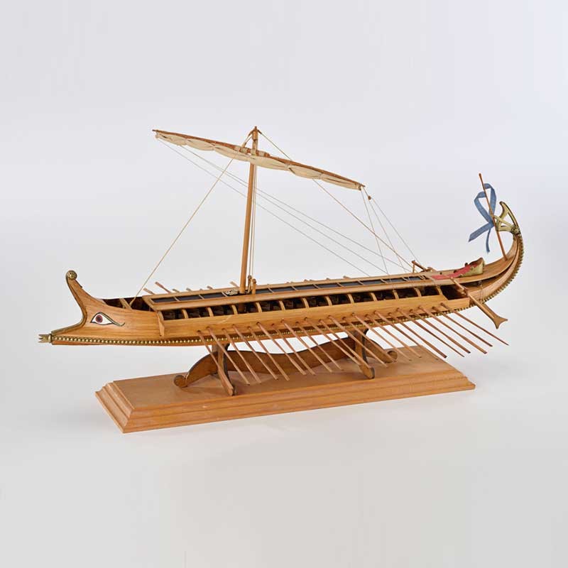 Planos de construcción birreme griego Amati escala 1:35. Largo total: 56 cm. Incluye carpeta con planos técnicos e instrucciones de montaje.