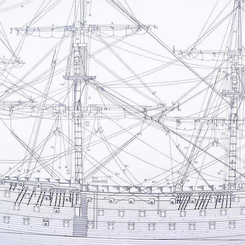 Los planos de este modelo naval de Amati se suministran dentro de una carpeta donde se encuentran los planos técnicos y las instrucciones de montaje en italiano con un suplemento en español.