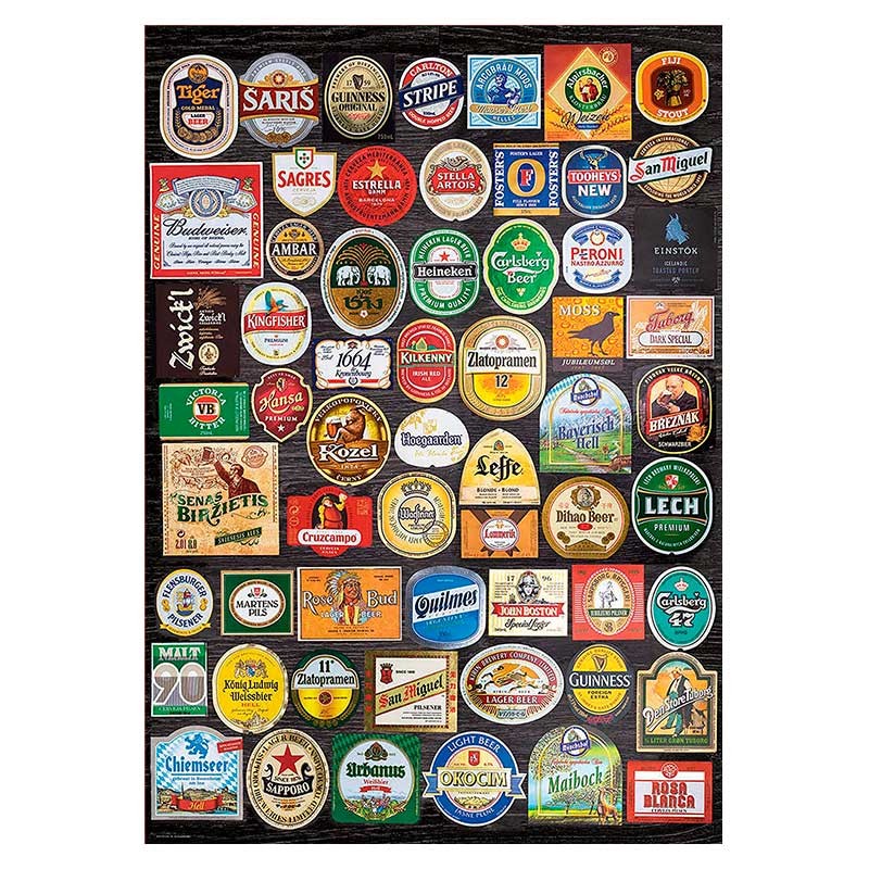 Puzzle Educa de 1500 piezas con cerca de 60 etiquetas de marcas de cerveza de todo el mundo.